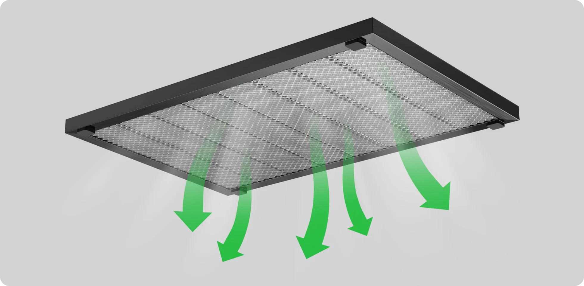 Cấu trúc honeycomb kết hợp đệm chống trượt 5 mm giúp tăng cường lưu thông không khí, giảm hiện tượng cháy sém do nhiệt và cải thiện khả năng thoát khói trong quá trình cắt.